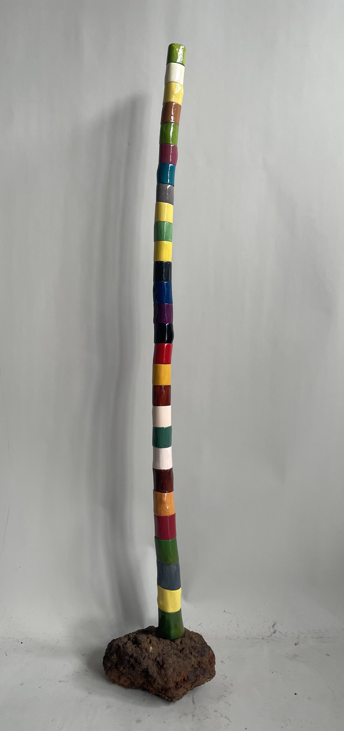 25 november 201820 januari 2026 by * staff #37 Context colours Diversity, S Staff # 37 on a standard of ore 142cm / 56″ < # 36. > # 38 Update 2025 Staff # 37 on a standard of ore 142cm / 56″ In 2025, I started refining the color tones of the pieces that were still in my studio. Staff #37 was one of them.